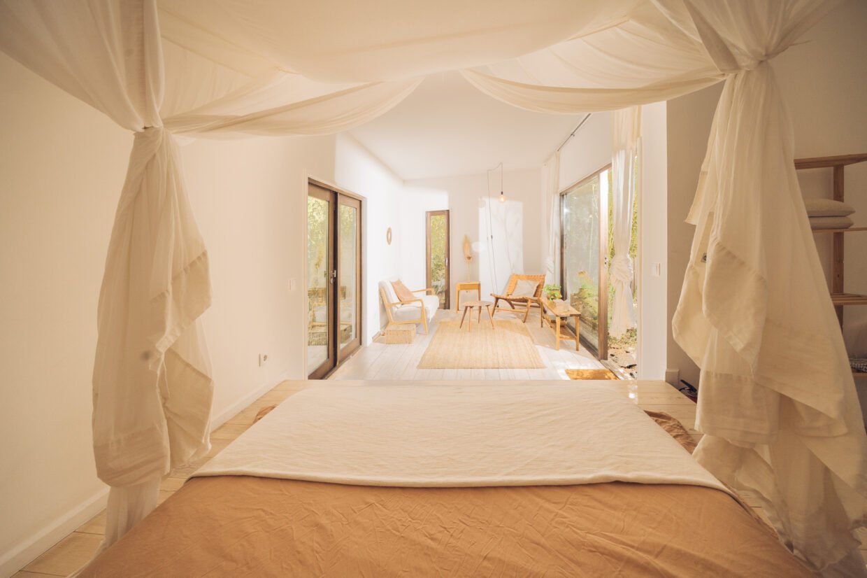 The studio houses has been inspired by the hosts many travels to Indonesia and also the minimalism from the hostess Scandinavian background. ‘We wanted to create a calming space for people something that makes it easy to switch off, relax and enjoy the nature.’